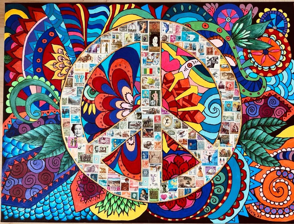 Aktuell entstehen mit viel Freude ihre StampsArt-Kunstwerke mit Briefmarken. Aus einem großen Fundus beeindruckender Briefmarken aus aller Welt schafft sie einzigartige Werke. Zu Gast in der „Tante Martin“ präsentiert sie eine kleine Auswahl älterer und neuer StampsArt-Arbeiten.
