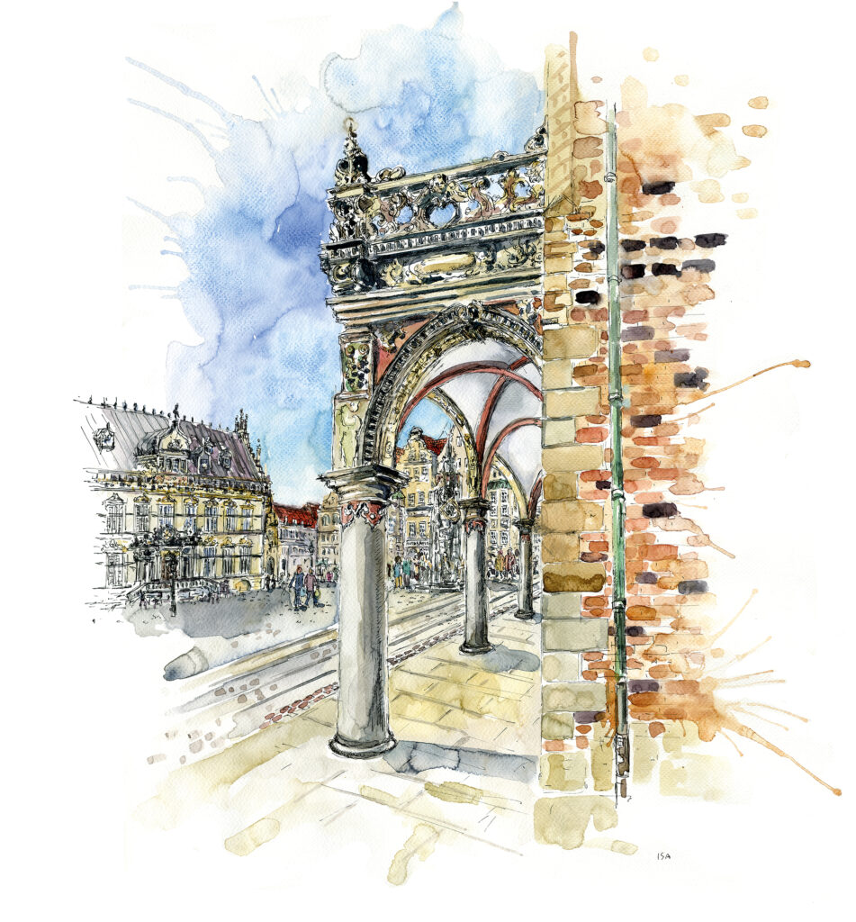 Isa Fischer arbeitet als Grafik-Designerin, Illustratorin und Hauszeichnerin in ihrer Heimatstadt Bremen. Sobald es das Wetter zulässt verlegt sie ihren Arbeitsplatz ins Freie, wo sie im Kundenauftrag oder für ihre eigenen Projekte Gebäude und Stadtansichten direkt vor dem Motiv zeichnet. Schon während ihres Studiums an der Hochschule für Künste in Bremen waren die Studienreisen mit den Dozenten, um das Zeichnen draußen vor dem Motiv zu praktizieren, die eindrucksvollsten Momente. Die vielen entstandenen Zeichnungen hat Isa Fischer unter anderem in diversen Bremen-Büchern verarbeitet, die sie in ihrem eigenen Verlag (Duplio) herausgibt.